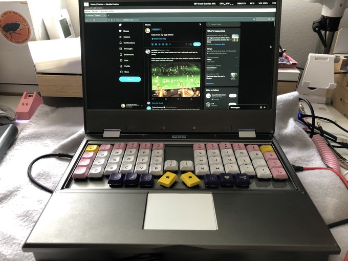 The most ambitious project around continues to be Jacqueline's hand-assembled, custom MNT Reform. Everything from the dark grey aluminum shell to the tasty purple motherboard to the magical ergo keyboard has been altered.