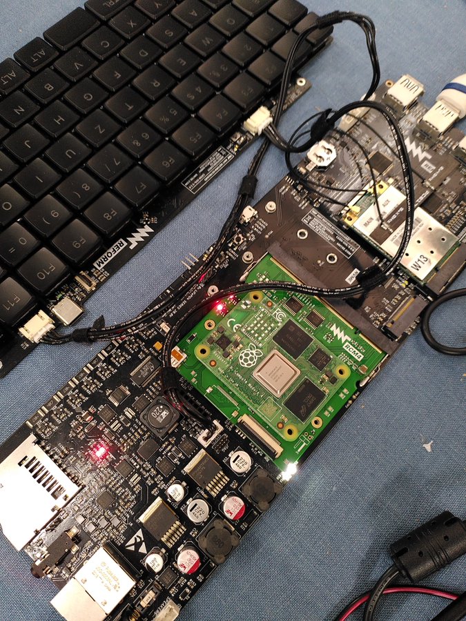 Photo of Raspberry Pi module connected to MNT Reform Laptop