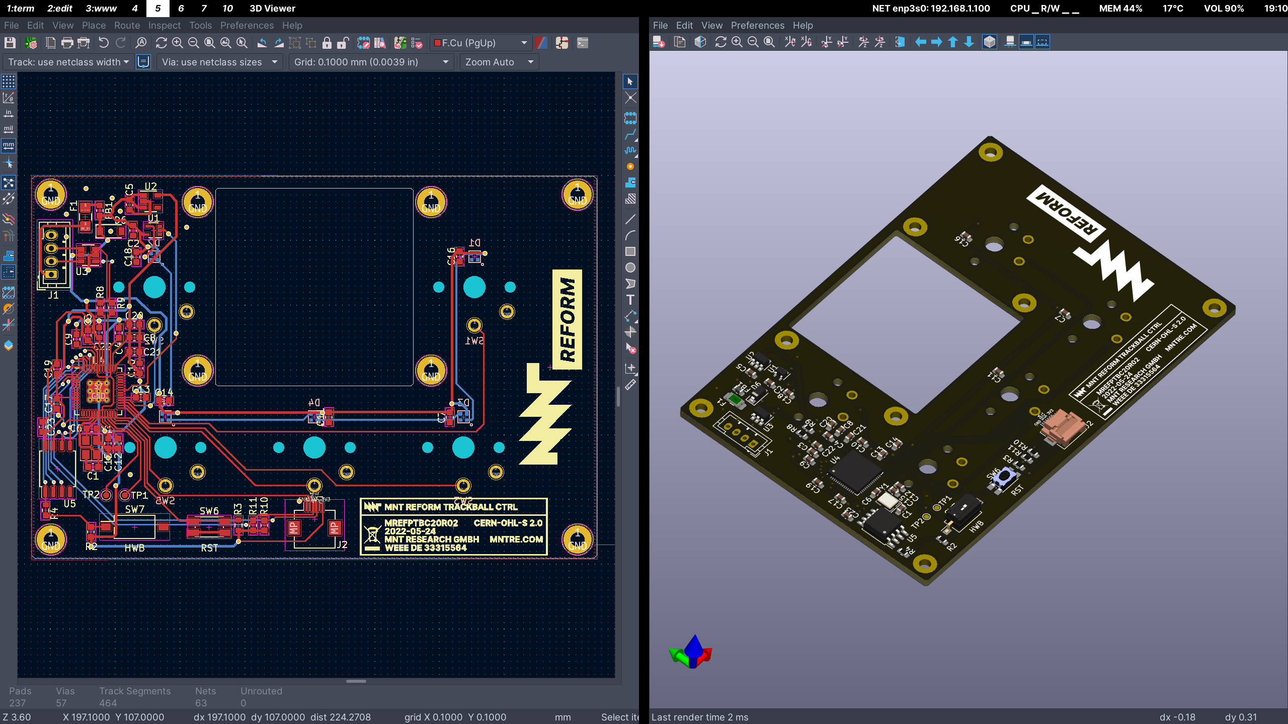 We are working on stocking the next batch of MNT Reform. Due to the global chip shortage we had to redesign the keyboard, trackball, trackpad and motherboard to use some different chips. For example, on the input devices we moved from ATmega to the new Raspberry Pi RP2040 MCU.